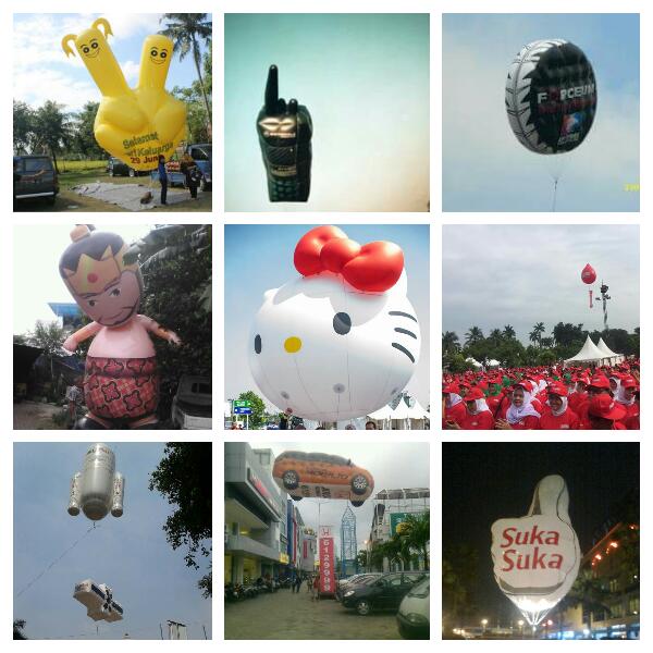 Balon udara sangat efektif digunakan untuk pameran, launching product ,seminar dan event-event lain seperti promosi pembangunan ruko, apartemen, perumahan, dan masih banyak lagi kegunaannya.. berikut contoh produk balon mascot / balon karakter